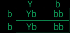 ה-Y הגדול שולט על ה-b הקטן. זאת אומרת שלכנר הזה יש נוצות צהובות (פקטור אחד)